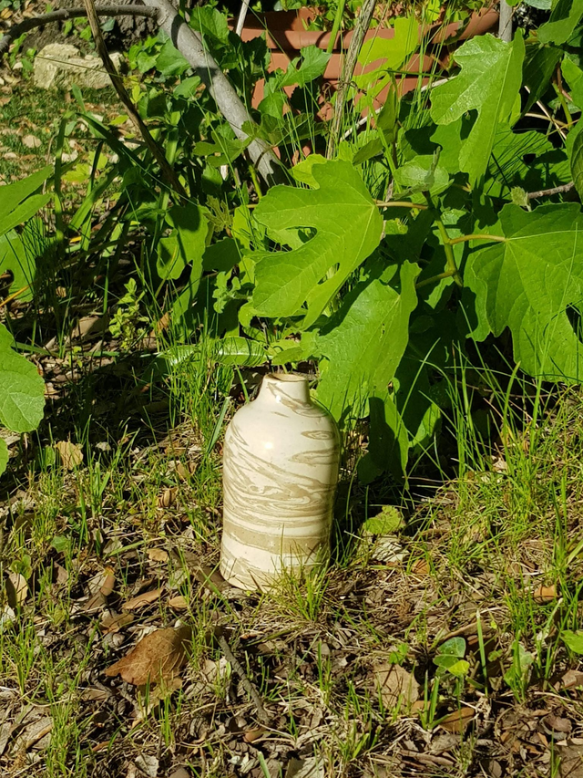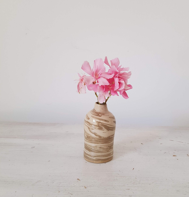 Bouteille en grès en terre mêlée de couleur blanche et marron, façonnée à la main avec minutie et amour. Elle convient parfaitement pour les amoureux des matières naturelles et est le cadeau idéal à offrir.