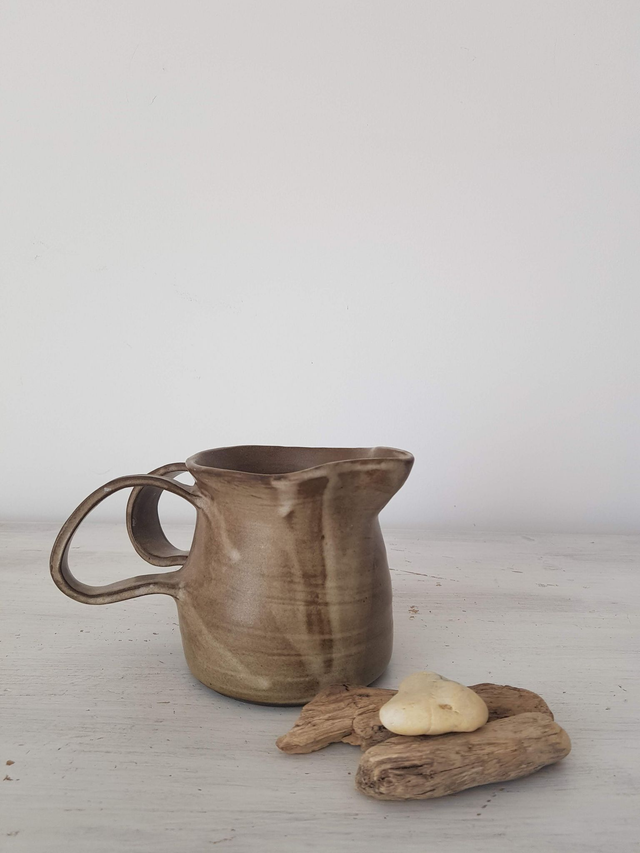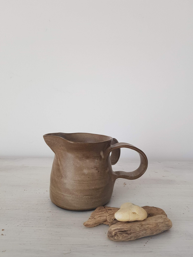 Pichet en grès noir, émail de couleur blanc mat, façonné à la main avec minutie et amour. Il convient parfaitement pour les amoureux des matières naturelles et est le cadeau idéal à offrir. Il peut être utilisé en carafe pour contenir un liquide ou comme vase.